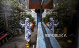 REPUBLIKA.CO.ID, BANDUNG -- Warga menyemprotkan cairan disinfektan di area permukiman warga saat penerapan Pemberlakuan Pembatasan Kegiatan Masyarakat (PPKM) Skala Mikro di Gang Karya Laksana, Tamansari, Kota Bandung, Selasa (9/2).