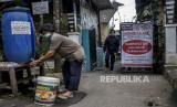 Warga menyemprotkan cairan disinfektan di area permukiman warga saat penerapan Pemberlakuan Pembatasan Kegiatan Masyarakat (PPKM) Skala Mikro di Gang Karya Laksana, Tamansari, Kota Bandung, Selasa (9/2). Pemerintah Kota Bandung memastikan Pemberlakuan Pembatasan Kegiatan Masyarakat (PPKM) akan dilanjutkan sesuai arahan pemerintah pusat yang melanjutkan PPKM Skala Mikro hingga 22 Februari guna mencegah penyebaran Covid-19 di tingkat kelurahan. Foto: Abdan Syakura/Republika (FOTO : ABDAN SYAKURA/REPUBLIKA)