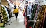 Pengunjung berkeliling di los pakaian Pasar Beringharjo, Yogyakarta, Rabu (20/2). Pemberlakuan PPKM di beberapa wilayah menyebabkan anjloknya pengunjung Pasar Beringharjo. Karena, mayoritas pembeli merupakan wisatawan. (FOTO : Wihdan Hidayat / Republika)