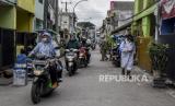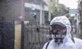 Petugas menyemprotkan cairan disinfektan di area permukiman warga saat operasi gabungan patroli pengawasan dan penegakan disiplin (Gakplin) protokol kesehatan Covid-19 di Antapani Kidul, Kecamatan Antapani, Kota Bandung, Rabu (10/2). Operasi tersebut digelar dalam rangka pemberlakuan pembatasan kegiatan masyarakat (PPKM) skala mikro guna menertibkan masyarakat agar lebih disiplin dalam menerapkan protokol kesehatan Covid-19 serta mencegah penyebaran Covid-19 di tingkat desa atau kelurahan. Foto: Abdan Syakura/Republika (FOTO : ABDAN SYAKURA/REPUBLIKA)