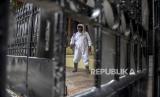 Warga menyemprotkan cairan disinfektan di Rumah Singgah Covid-19 RW 06 di Jalan Cikampek, Antapani, Kota Bandung, Rabu (10/2). Warga RW 06 Kelurahan Antapani mengubah rumah kosong milik warga setempat menjadi rumah singgah bagi keluarga dari pasien yang terpapar Covid-19 yang sedang menjalani isolasi mandiri di rumah. Foto: Abdan Syakura/Republika (FOTO : ABDAN SYAKURA/REPUBLIKA)