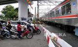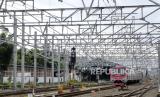 KRL komuter Jogja-Solo melintas di Stasiun Lempuyangan, Yogyakarta, Rabu (10/2). (FOTO : Wihdan Hidayat / Republika)