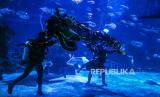 REPUBLIKA.CO.ID, JAKARTA -- Liong beraksi menghibur pengunjung saat pertunjukan Liong Show Underwater di Jakarta Aquarium Safari, Jakarta, Jumat (12/2). Pertunjukan atraksi liong dan putri duyung didalam air tersebut digelar dalam rangka perayaan Tahun Baru Imlek 2572.