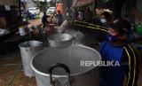 REPUBLIKA.CO.ID, NGANJUK -- Relawan memasak air di dapur umum tanah longsor di Ngetos, Nganjuk, Jawa Timur, Senin (15/2/2021).