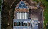 Foto udara Instalasi Pengolahan Air Minum (IPAM) milik Perumda Tirta Raharja di Desa Sadu, Soreang, Kabupaten Bandung, Jawa Barat, Selasa (16/2/2021). IPAM Sadu mampu mengolah air baku menjadi air bersih dengan kapasitas 200 liter per detik yang kemudian didistribusikan kepada 8.700 pelanggan di empat kecamatan di Kabupaten Bandung. (FOTO : Antara/Raisan Al Farisi)