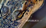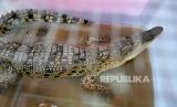 Satwa dilindungi Buaya Muara (crocodylus porosus) ditampilkan saat gelar kasus perniagaan satwa dilindungi di Ditpolairud Polda DIY, Bantul, Yogyakarta, Selasa (16/2). (FOTO : Wihdan Hidayat / Republika)