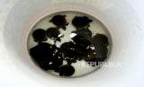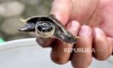 Barang bukti satwa labi-labi moncong babi (carettochelys insclupta) ditampilkan saat gelar kasus perniagaan satwa dilindungi di Ditpolairud Polda DIY, Bantul, Yogyakarta, Selasa (16/2). (FOTO : Wihdan Hidayat / Republika)