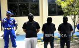 Tiga tersangka dihadirkan saat gelar kasus perniagaan satwa dilindungi di Ditpolairud Polda DIY, Bantul, Yogyakarta, Selasa (16/2). (FOTO : Wihdan Hidayat / Republika)