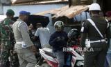 REPUBLIKA.CO.ID, BANDA ACEH -- Petugas gabungan melakukan pemeriksaan terhadap warga yang tidak mengenakan masker di jalan raya Banda Aceh, Rabu (16/2).