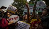 REPUBLIKA.CO.ID, JAKARTA -- Massa melakukan aksi unjuk rasa untuk memprotes penangkapan aktivis yang dilakukan oleh polisi India, di New Delhi, Selasa (16/2).