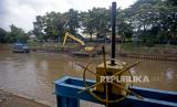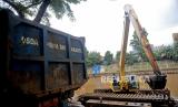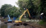REPUBLIKA.CO.ID, JAKARTA -- Pekerja dengan alat berat mengeruk endapan sampah bercampur lumpur di aliran Sungai Ciliwung di Kampung Melayu, Jakarta, Rabu (17/2). Pengerukan tersebut dilakukan guna menormalkan kedalaman sungai sehingga aliran air berfungsi secara normal dan mengantisipasi banjir di Jakarta.