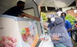 REPUBLIKA.CO.ID, JAKARTA -- Warga daging di layanan Food Truck Daging Goes to Kelurahan di Kelurahan Pisangan Baru, Jakarta, Rabu (17/2). Layanan jemput bola yang dilakukan oleh PD Dharma Jaya tersebut berujuan untuk memudahkan masyarakat membeli daging berkualitas dengan harga yang kompetitif.