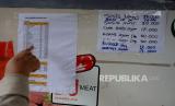 Warga mengamati harga pada acara Food Truck Daging Goes to Kelurahan di Kelurahan Pisangan Baru, Jakarta, Rabu (17/2). (FOTO : Prayogi/Republika.)