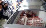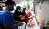 Warga membeli daging di pada acara Food Truck Daging Goes to Kelurahan di Kelurahan Pisangan Baru, Jakarta, Rabu (17/2). (FOTO : Prayogi/Republika.)