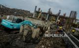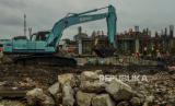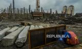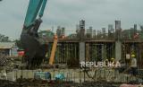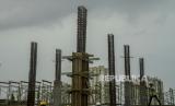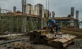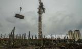 Suasana pembangunan Kampung Susun Akuarium di kawasan Penjaringan, Jakarta, Rabu (17/2). Pembangunan Kampung Susun Akuarium yang terdiri dari 5 blok itu sudah mencapai 32,72 persen dan ditargetkan selesai pada 17 Agustus 2021. Republika/Putra M. Akbar (FOTO : Republika/Putra M. Akbar)