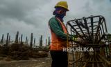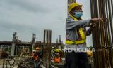 Sejumlah pekerja saat menyelesaikan pembangunan Kampung Susun Akuarium di kawasan Penjaringan, Jakarta, Rabu (17/2). Pembangunan Kampung Susun Akuarium yang terdiri dari 5 blok itu sudah mencapai 32,72 persen dan ditargetkan selesai pada 17 Agustus 2021. Republika/Putra M. Akbar (FOTO : Republika/Putra M. Akbar)