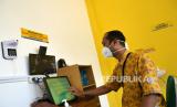 Alat komunikasi pasien Covid-19 dengan perawat atau admin secara virtual di rumah sakit mini di Shelter Gose Covid-19, Bantul, Yogyakarta, Kamis (18/2). RSU PKU Muhammadiyah menyulap lapangan futsal menjadi shelter pasien Covid-19 OTG. Shelter darurat ini memiliki 32 bilik untuk 16 pasien laki-laki serta 16 pasien perempuan. Selain itu, di sini juga dilengkapi rumah sakit mini serta dokter dan empat perawat yang berjaga. (FOTO : Wihdan Hidayat / Republika)