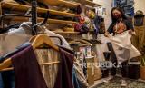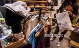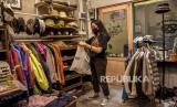 Staf toko pakaian di The Hallway Kosambi, Pasar Kosambi memasukkan produk pakaian ke dalam kantong belanja ramah lingkungan , Kota Bandung, Kamis (18/2). (FOTO : ABDAN SYAKURA/REPUBLIKA)