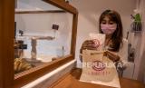Staf gerai roti mengemas kue menggunakan kantong belanja ramah lingkungan di tokonya di The Hallway Kosambi, Pasar Kosambi, Kota Bandung, Kamis (18/2). (FOTO : ABDAN SYAKURA/REPUBLIKA)