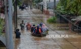 REPUBLIKA.CO.ID, JAKARTA -- Banjir yang merendam kawasan Cipinang Melayu, Jakarta Timur, Jumat (19/2). Banjir yang terjadi akibat luapan Kali Sunter tersebut menggenangi sebanyak lima Rukun tetangga diantaranya RT 01 hingga RT 05 yang bread di RW 04 dengan ketinggian 90 centimeter.