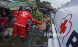 Untuk itu petugas Palang Merah Indonesia (PMI) mengisi air bersih untuk dapur umum warga terdampak banjir di Pekalongan, Jawa Tengah, Jumat (19/2). PMI Kota Pekalongan mendistribusikan air bersih sebanyak 1.500 liter per hari untuk warga terdampak banjir yang kekurangan air bersih.