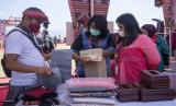 Menteri Pariwisata dan Ekonomi Kreatif (Kemenparekraf) Sandiaga Uno (tengah) didampingi Bupati Kabupaten Dairi Eddy Keleng Ate Berutu (kanan) dan istri Romy Frida Mariani Simarmata (kedua kiri) menyapa warga usai peluncuran Gerakan Nasional (Gernas) Bangga Buatan Indonesia (BBI) Beli Kreatif Danau Toba, di Paropo, Dairi, Sumatera Utara, Sabtu (20/2). (FOTO : ANTARA/Nova Wahyudi)