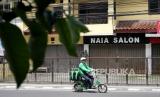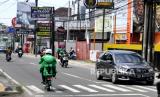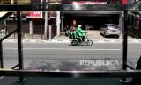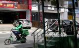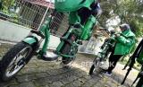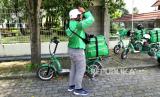 REPUBLIKA.CO.ID, YOGYAKARTA -- Ojek daring menggunakan sepeda listrik bersiap mengambil pesanan makanan di kawasan Seturan, Yogyakarta, Ahad (27/2).