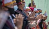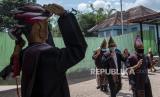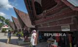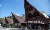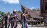 REPUBLIKA.CO.ID, SAMOSIR -- Wisatawan menari tarian tor tor di depan patung Sigale-gale di Desa Wisata Tomok, Simanindo, Samosir, Sumatera Utara, Ahad (21/2/2021).