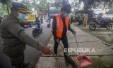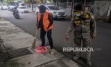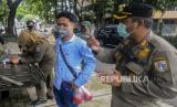 REPUBLIKA.CO.ID, JAKARTA -- Petugas Satpol PP memberikan sanksi sosial kepada warga yang melanggar protokol kesehatan di kawasan Kemang, Jakarta, Senin (22/2).