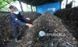 Petugas memperlihatkan pupuk organik hasil pengomposan sampah organik sebagai salah satu penerapan program Kang Pisman (Kurangi Pisahkan dan Manfaatkan) di TPS Babakan Sari, Kota Bandung, Senin (22/2). Program Kang Pisman terus disosialisasikan kepada masyarakat sebagai salah satu cara penanganan sampah di Kota Bandung yang menguntungkan. (FOTO : Edi Yusuf/Republika)