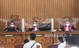 REPUBLIKA.CO.ID, JAKARTA -- Hakim Ketua Alfian memimpin jalannya sidang lanjutan kasus kebakaran gedung Kejaksaan Agung di Pengadilan Negeri Jakarta Selatan, Senin (22/2/2021).