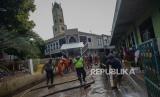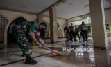 REPUBLIKA.CO.ID, JAKARTA -- Personel gabungan dari TNI, Polri, petugas Pemadam Kebakaran, PPSU, dan warga sekitar membersihkan endapan lumpur sisa banjir di area Masjid Al-Hidayah, Cipinang Melayu. Jakarta Timur, Senin (22/2). Kegiatan kerja bakti tersebut dilakukan diarea tempat ibadah agar dapat digunakan kembali untuk beribadah.