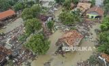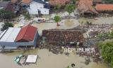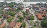REPUBLIKA.CO.ID, BEKASI -- Foto udara pemukiman warga yang terdampak jebolnya tanggul Sungai Citarum di Desa Sumber Urip, Pebayuran, Kabupaten Bekasi, Jawa Barat, Selasa (23/2).