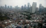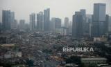 Deretan gedung bertingkat dan pemukiman penduduk di kawasan Jakarta, Selasa (23/2). Pemerintah memprediksi pertumbuhan ekonomi kisaran 4,5 persen sampai 5,3 persen pada tahun ini. Adapun prediksi ini menyusul dukungan program vaksinasi Covid-19 sebagai penentu pertumbuhan ekonomi Indonesia.Prayogi/Republika. (FOTO : Prayogi/Republika.)