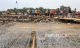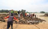 REPUBLIKA.CO.ID, SUBANG -- Warga bersama petugas gabungan bergotong royong memperbaiki tanggul sungai Cipunagara yang jebol di desa Bongas, Pamanukan, Subang, Jawa Barat, Rabu (24/2/2021).