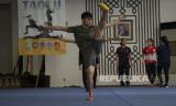 Atlet wushu nomor taolu Zoura Nebulani menjalani pemusatan latihan nasiona lWushu di Jakarta, Kamis (25/2). (FOTO : ANTARAAditya Pradana Putra)