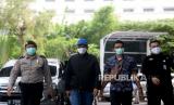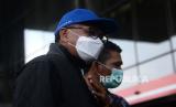 REPUBLIKA.CO.ID, JAKARTA -- Gubernur Sulawesi Selatan Nurdin Abdullah (mengenakan topi biru) dikawal petugas saat tiba di Gedung KPK, Jakarta, Sabtu (27/2).