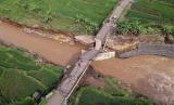 REPUBLIKA.CO.ID, BATANG -- Foto udara kondisi Jembatan Kalipetung yang roboh di Desa Satriyan, Tersono, Kabupaten Batang, Jawa Tengah, Sabtu (27/2/2021).