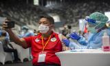 REPUBLIKA.CO.ID, JAKARTA -- Sejumlah atlet dan ofisial menjalani vaksinasi COVID-19 di Istora Senayan, Gelora Bung Karno (GBK), Jakarta, Jumat (26/2).
