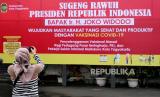 Pengunjung memotret baliho vaksinasi Covid-19 massal di Pasar Beringharjo, Yogyakarta, Ahad (28/2). (FOTO : Wihdan Hidayat / Republika)