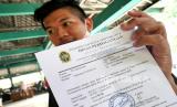 Pedagang menunjukkan undangan vaksinasi Covid-19 di Pasar Beringharjo, Yogyakarta, Ahad (28/2). (FOTO : Wihdan Hidayat / Republika)