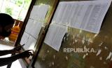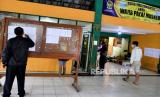 Pedagang memeriksa jadwal vaksinasi Covid-19 di Pasar Beringharjo, Yogyakarta, Ahad (28/2). (FOTO : Wihdan Hidayat / Republika)