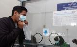 Calon penumpang Kereta Api (KA) melakukan tes deteksi COVID-19 dengan metode GeNose C19, di Stasiun KA Purwokerto, Banyumas, Jateng, Ahad (28/2). (FOTO : ANTARA/Idhad Zakaria)