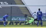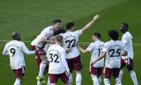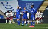 Reaksi para pemain Leicester pada laga Liga Primer Inggris, Ahad (28/2). (FOTO : EPA-EFE/Rui Vieira )
