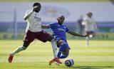 Nicolas Pepe dari Arsenal, kiri, duel perebutan bola dengan Ricardo Pereira dari Leicester (FOTO : Tim Keeton/Pool via AP)