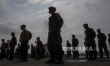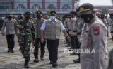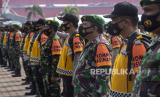 REPUBLIKA.CO.ID, PALEMBANG -- Personel polisi dan TNI mengikuti apel gelar pasukan kompi tracer (pelacak) dan kompi vaksinator COVID-19 di Lapangan Benteng Kuto Besak (BKB), Palembang, Sumatera Selatan, Senin (1/3).