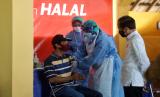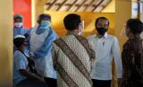 REPUBLIKA.CO.ID, YOGYAKARTA -- Presiden Joko Widodo meninjau vaksinasi COVID-19 massal di Pasar Beringharjo, Yogyakarta, Senin (1/3/2021). Dalam kunjungan itu Presiden Joko Widodo menyaksikan secara langsung proses vaksinasi COVID-19 bagi warga lanjut usia, pedagang serta pekerja informal di Yogyakarta.