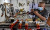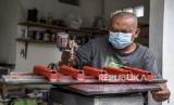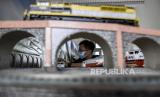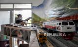 Perajin menyelesaikan pembuatan miniatur kereta di rumah produksi EDM Modeller and Replica, Jalan Haji Haris, Baros, Kota Cimahi, Senin (1/3). (FOTO : ABDAN SYAKURA/REPUBLIKA)