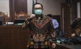 Terdakwa kasus suap penghapusan red notice Djoko Tjandra, Brigjen Pol Prasetijo Utomo berjalan saat akan menjalani sidang lanjutan dengan agenda pembacaan duplik atau tanggapan atas replik jaksa Kejagung di Pengadilan Tipikor, Jakarta, Senin (1/3/2021). Dalam dupliknya, tim pengacara meminta majelis hakim menyatakan terdakwa tidak bersalah melakukan tindak pidana korupsi serta mengabulkan Justice Collaborator (JC) yang diajukan Prasetijo Utomo dan meminta nama baiknya dipulihkan. (FOTO : ANTARA/Muhammad Adimaja)