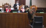 Terdakwa kasus suap penghapusan red notice Djoko Tjandra, Brigjen Pol Prasetijo Utomo menjalani sidang lanjutan dengan agenda pembacaan duplik atau tanggapan atas replik jaksa Kejagung di Pengadilan Tipikor, Jakarta, Senin (1/3/2021). Dalam dupliknya, tim pengacara meminta majelis hakim menyatakan terdakwa tidak bersalah melakukan tindak pidana korupsi serta mengabulkan Justice Collaborator (JC) yang diajukan Prasetijo Utomo dan meminta nama baiknya dipulihkan. (FOTO : ANTARA/Muhammad Adimaja)